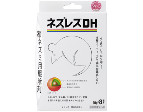 | 特徴 | ■ネズミが好む食品を配合した、食いつきの良いネズミ駆除剤です。 ■使い方は簡単で、袋を破らずにそのままネズミの出る場所に設置するだけです。 ■3~5日間、継続して同じネズミに食べさせることにより効果を発揮します。 発売元【レインボー薬品㈱】 |